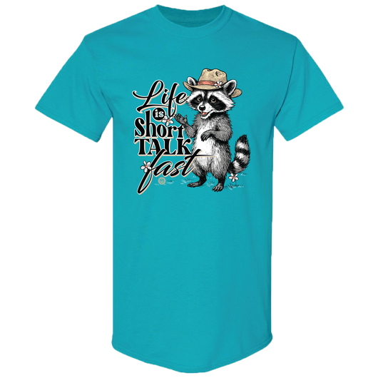 Life's way too short for boring basics! Rock our GGO-2792 Talk Fast Raccoon t-shirt in tropical blue and let your personality shine. Made from soft, breathable 100% cotton, it's the perfect blend of southern charm and cheeky attitude. Available in sizes S-3XL!